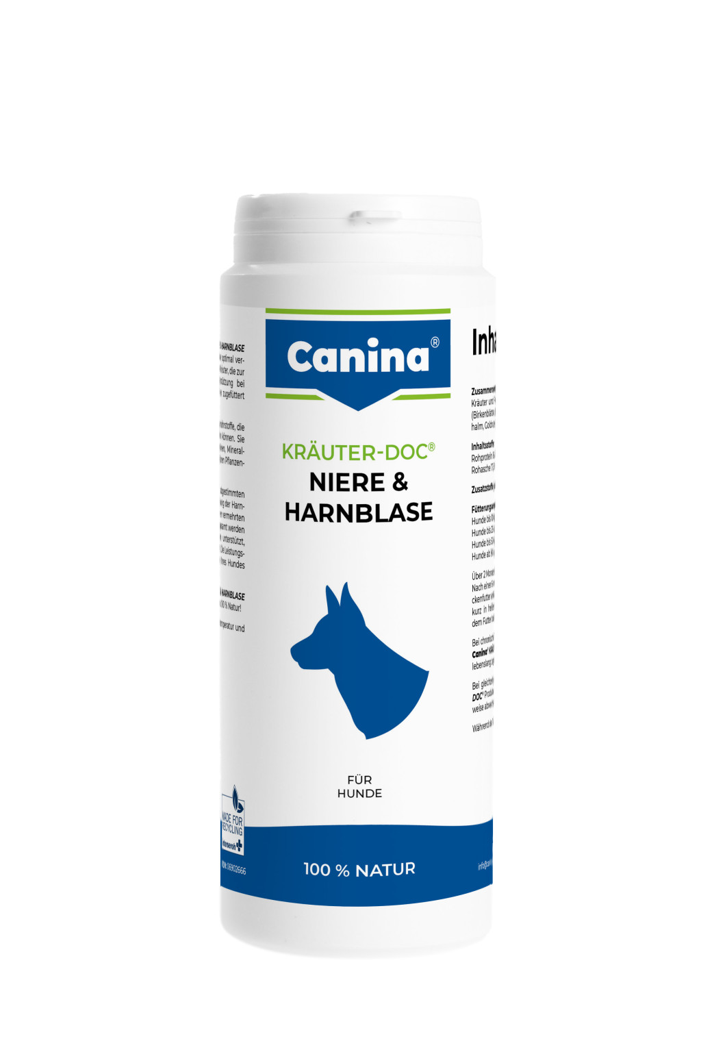 A Canina® KRÄUTER-DOC® NIERE&HARNBLASE finomra őrölt, optimális gyógynövénykeverék, amely a táplálékhoz adva táplálékkiegészítőként támogatja a vesét és a húgyhólyagot. A gyógynövények fontos fitonutrienseket biztosítanak, amelyek hiányozhatnak a napi étrendből. Vitaminokkal, ásványi anyagokkal, aminosavakkal és másodlagos növényi anyagokkal látják el a szervezetet. A speciálisan összehangolt gyógynövények növelhetik a vizelet áramlását a húgyutakon keresztül, ami fokozott vízkiválasztást eredményez. Támogatják a vese és a húgyhólyag működését, és enyhítik a húgyúti irritációkat. A benne található aranyvessző elősegíti a húgyutak fertőtlenítését. A keverék javítja kutyája teljesítményét és jólétét. A Canina® KRÄUTER-DOC® NIERE&HARNBLASE nem tartalmaz kémiai adalékanyagokat. 100%-ban természetes!
